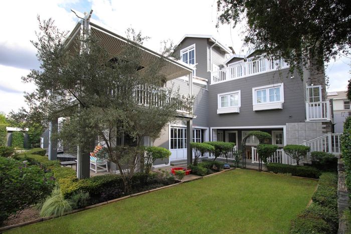 Sophisticated family living in Bryanston close to St Stithians and Sandton CBD — entertainer's layout centered around a private cantilever balcony; four bedrooms, double garage.