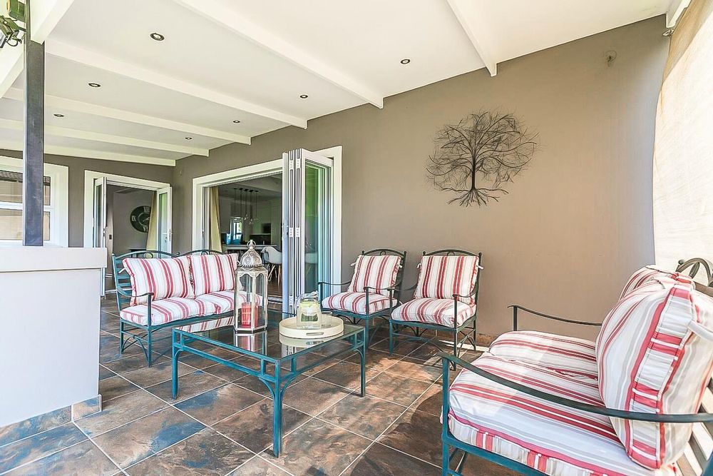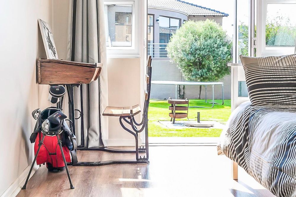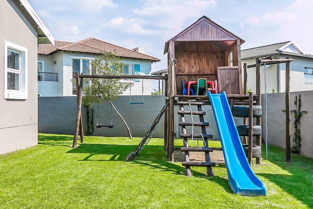 The outdoor area is a family haven, with a large enclosed yard complete with a jungle gym, treehouse, and swings, ideal for children. The home is equipped with an 8KVA Turner Morris generator and solar backup system, ensuring uninterrupted power supply. Additional features include a heat pump geyser, prepaid electricity, a double automated garage with direct home access, and extra driveway parking behind an electric gate with intercom access.