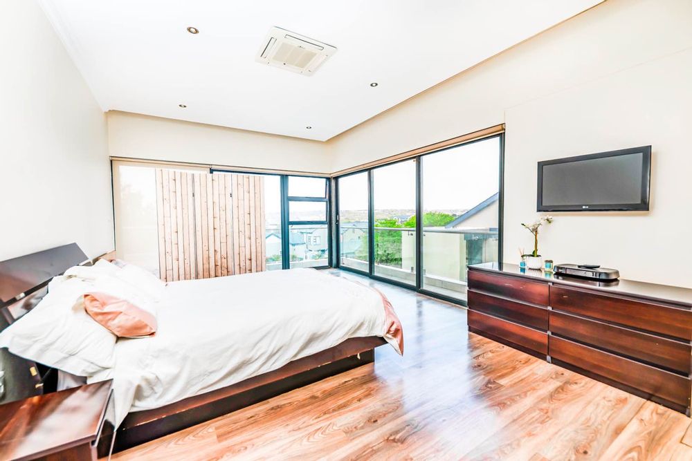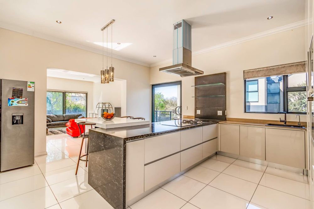 Experience the pinnacle of luxury living in this stunning north-facing, four-bedroom residence, uniquely situated on a prominent corner stand within the prestigious Helderfontein Estate. This elevated home epitomizes modern architecture with its sleek lines, towering ceilings, and expansive windows that bathe the interiors in natural light, creating an inviting and sophisticated ambiance.