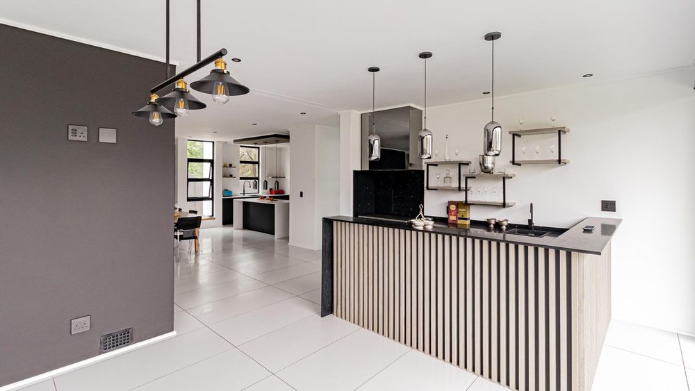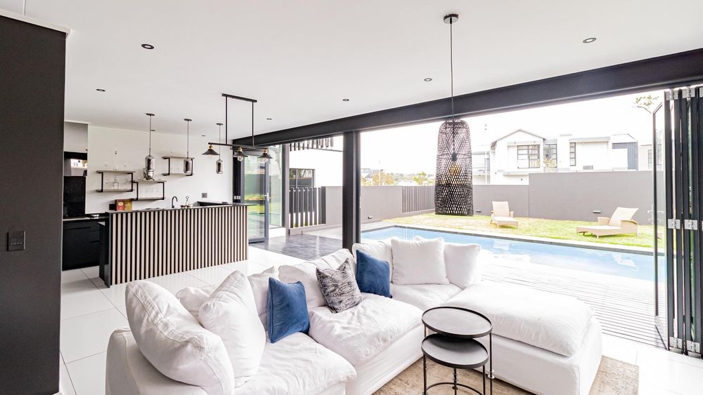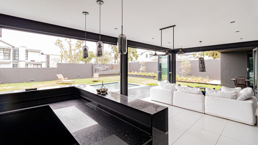 Discover the perfect blend of modern luxury and homely warmth in this architectural masterpiece 5-bedroom home, nestled in the highly sought-after Helderfontein Residential Estate. Designed with both family living and sophisticated entertaining in mind, this contemporary residence is flooded with natural light and finished to the highest standards.