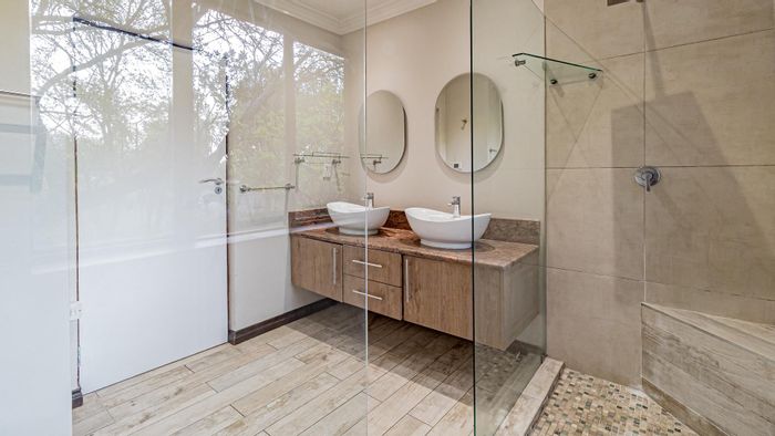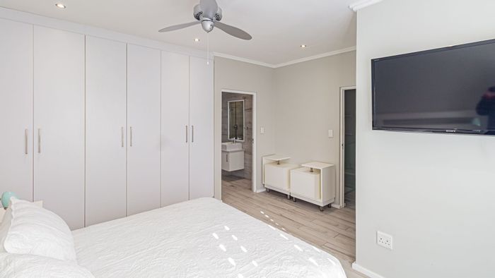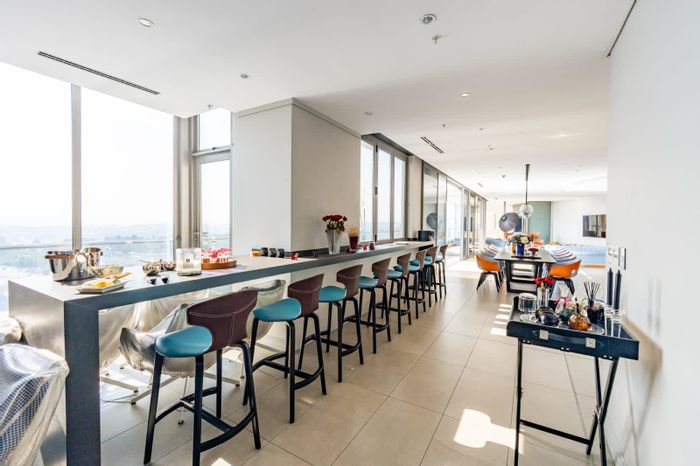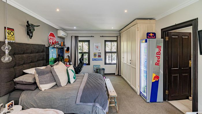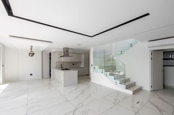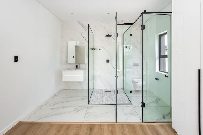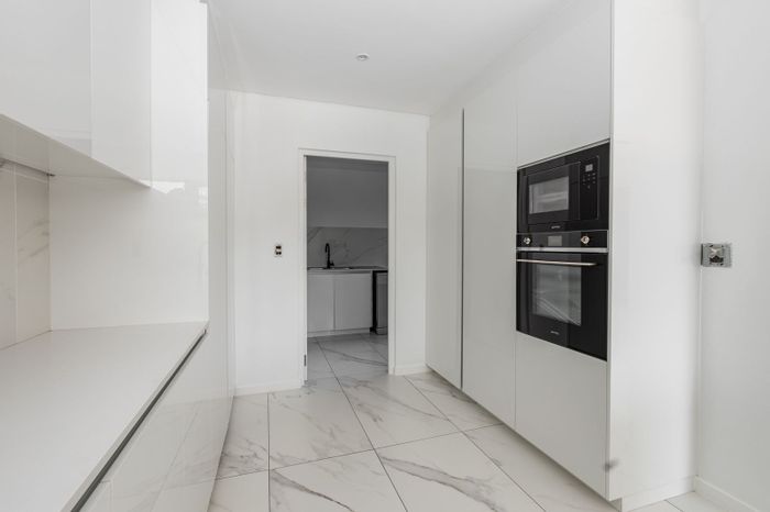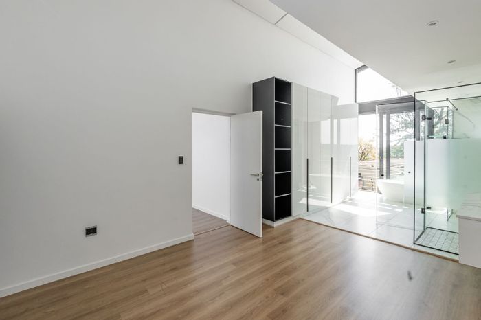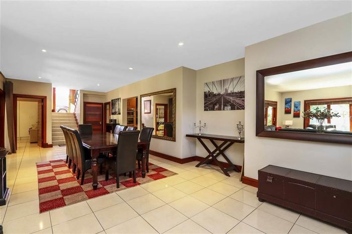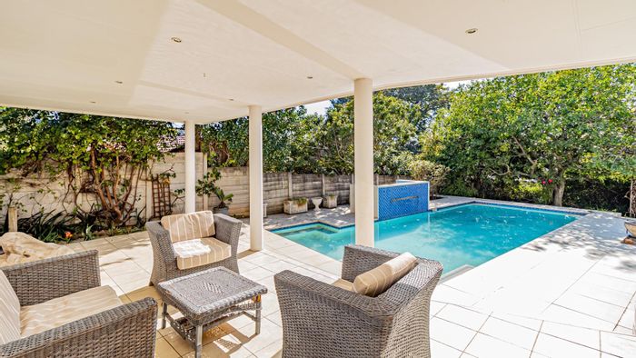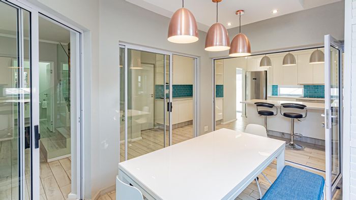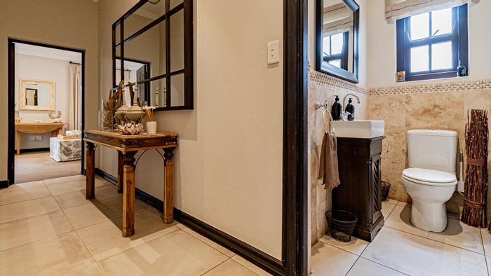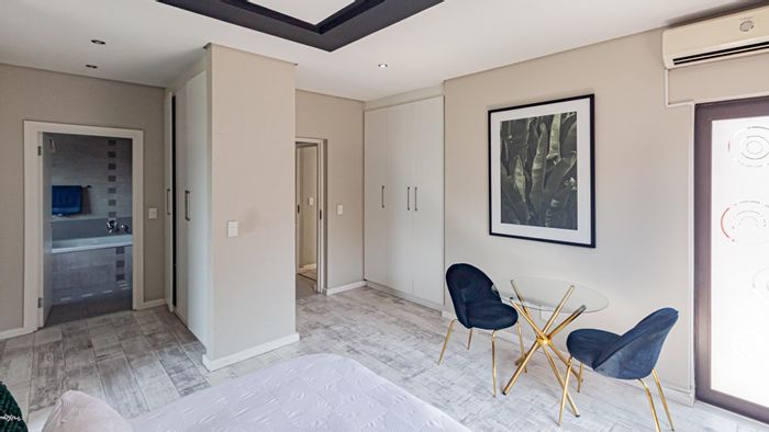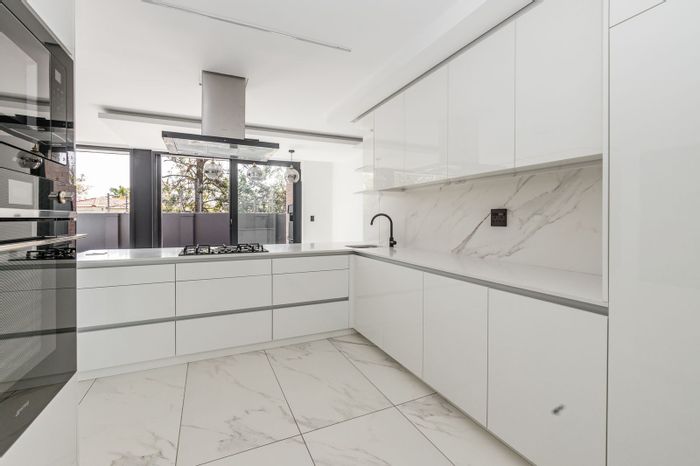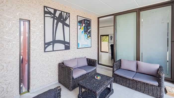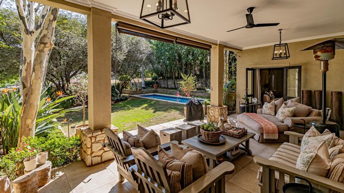 Italian-inspired home in Bucclueh, Sandton — 15 minutes to Sandton CBD, with private flatlet, sparkling pool, landscaped garden and covered entertainment patio; three bedrooms, 3.5 baths.