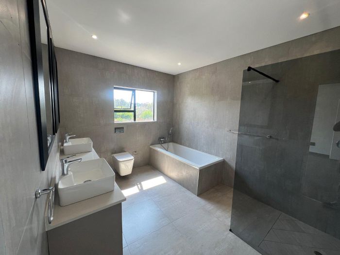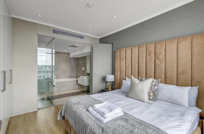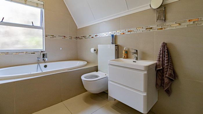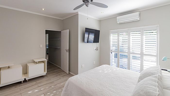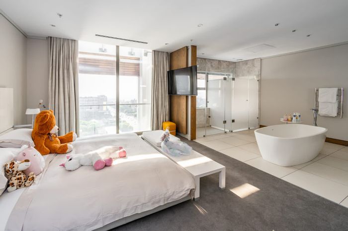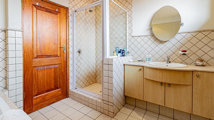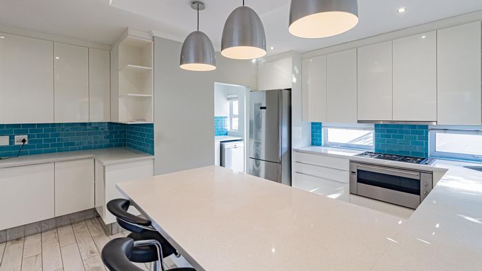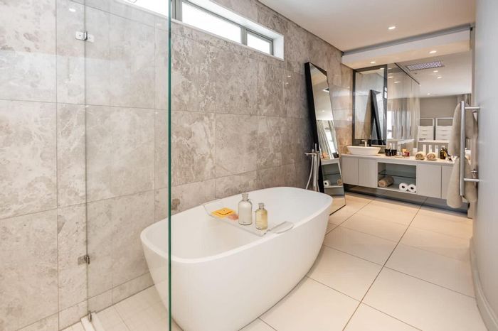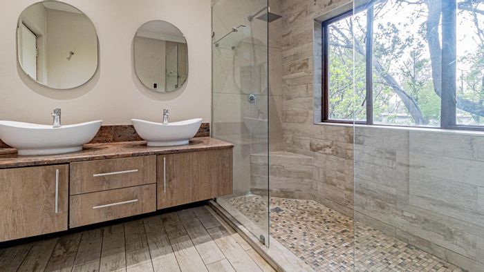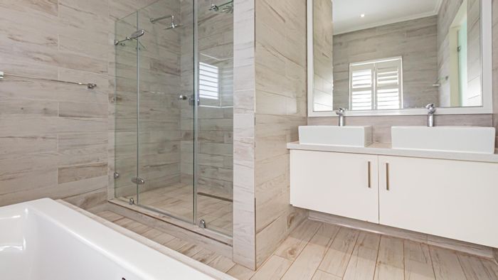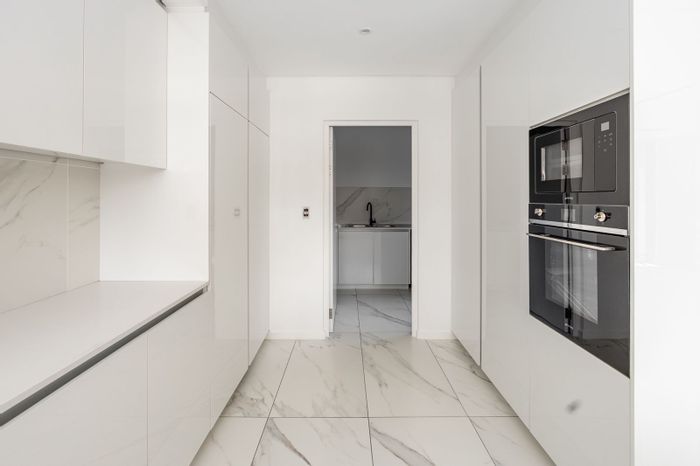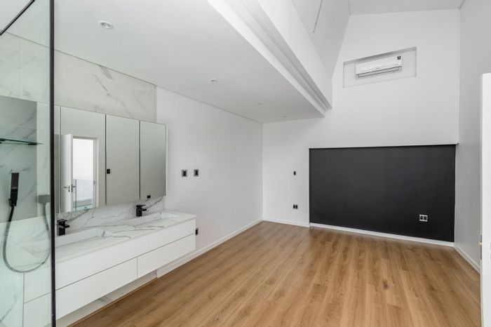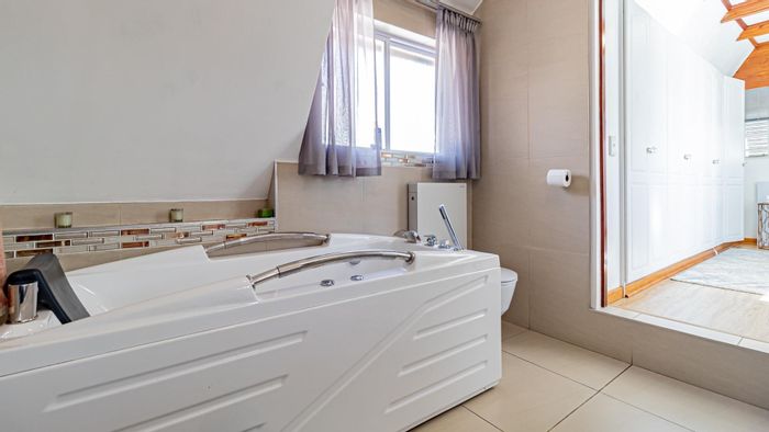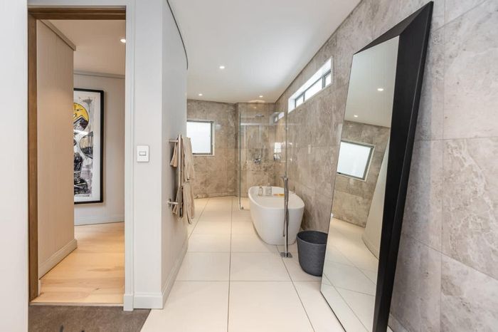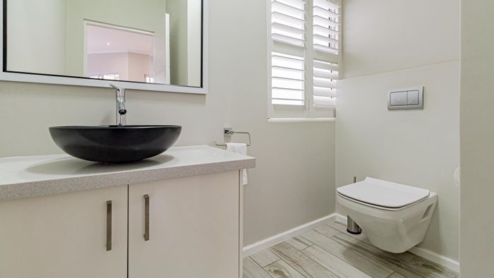 Italian-inspired home in Bucclueh, Sandton — 15 minutes to Sandton CBD, with private flatlet, sparkling pool, landscaped garden and covered entertainment patio; three bedrooms, 3.5 baths.