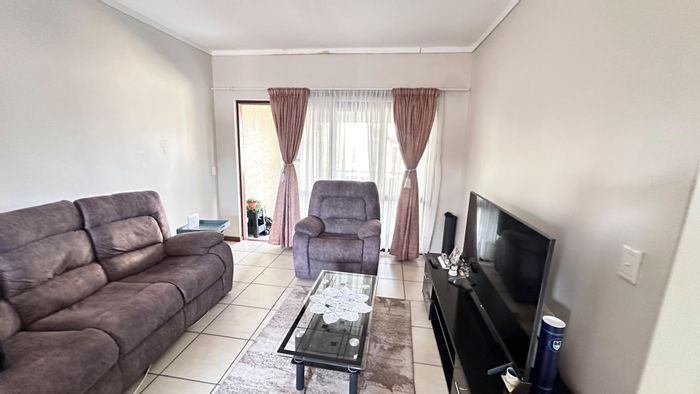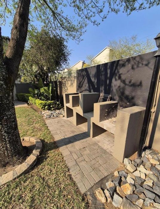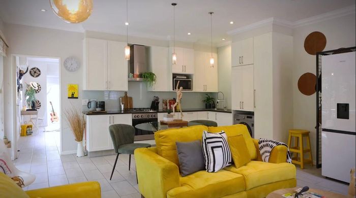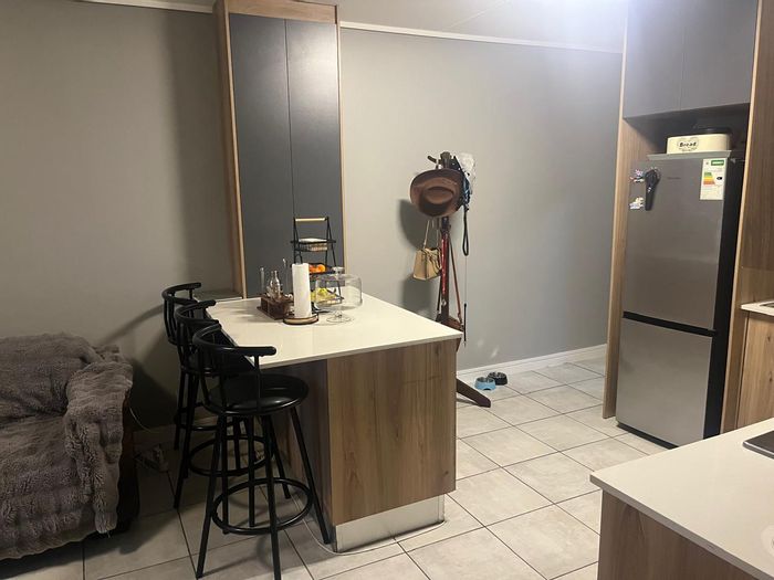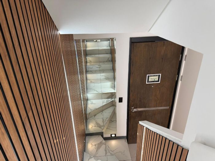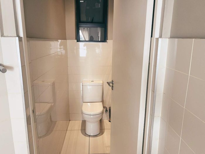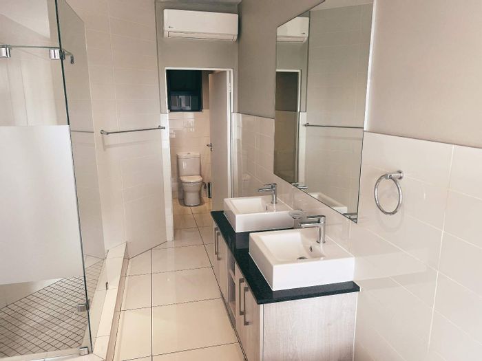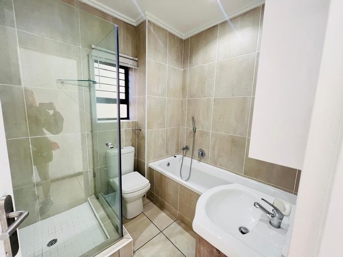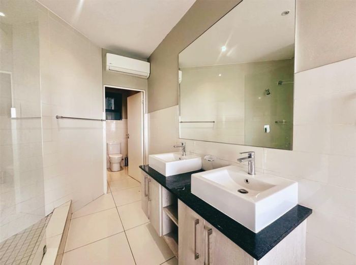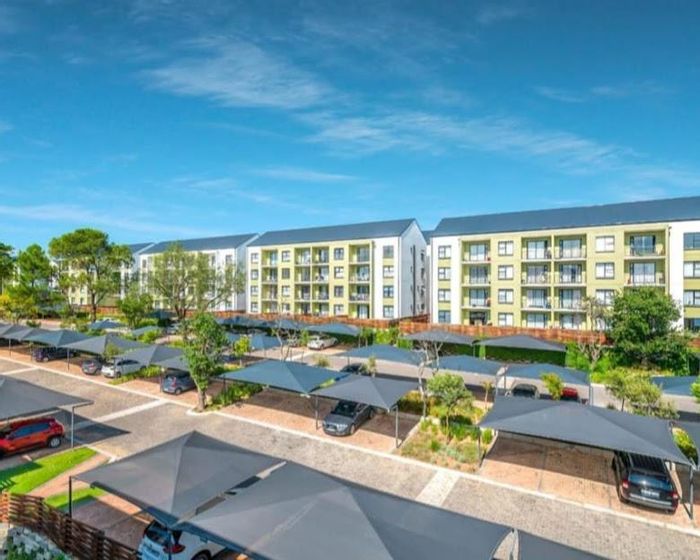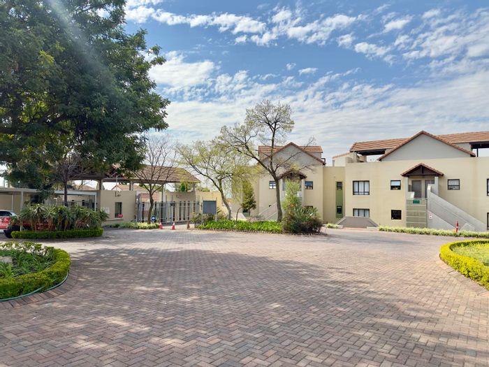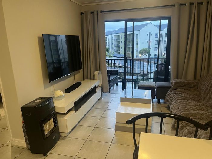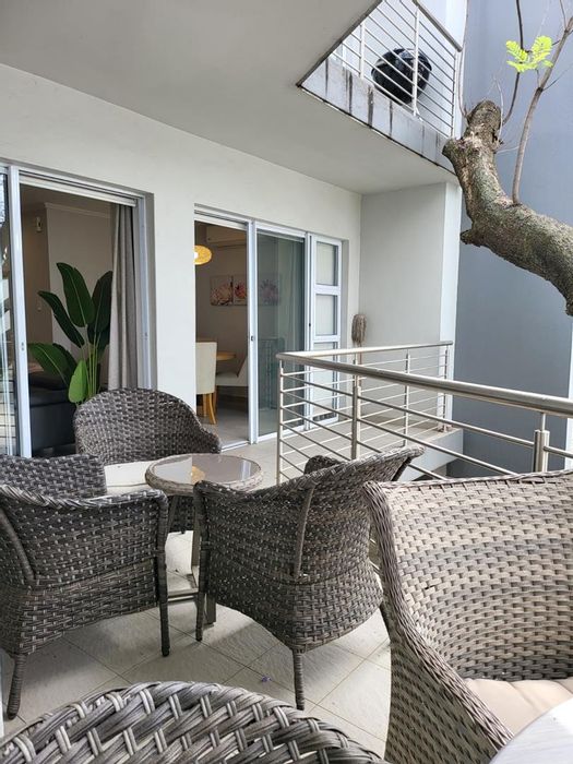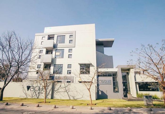 Fully furnished apartment in prestigious Simba Residential, Sandown — open-plan living with a modern kitchen, landscaped communal areas, 24-hour security and secure open parking; 1 bed, 1 bath.