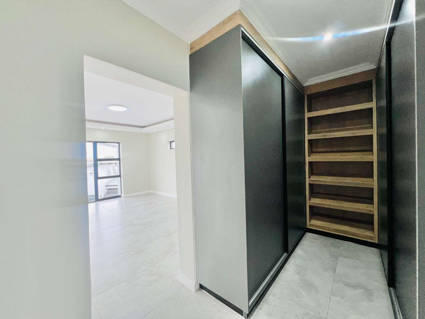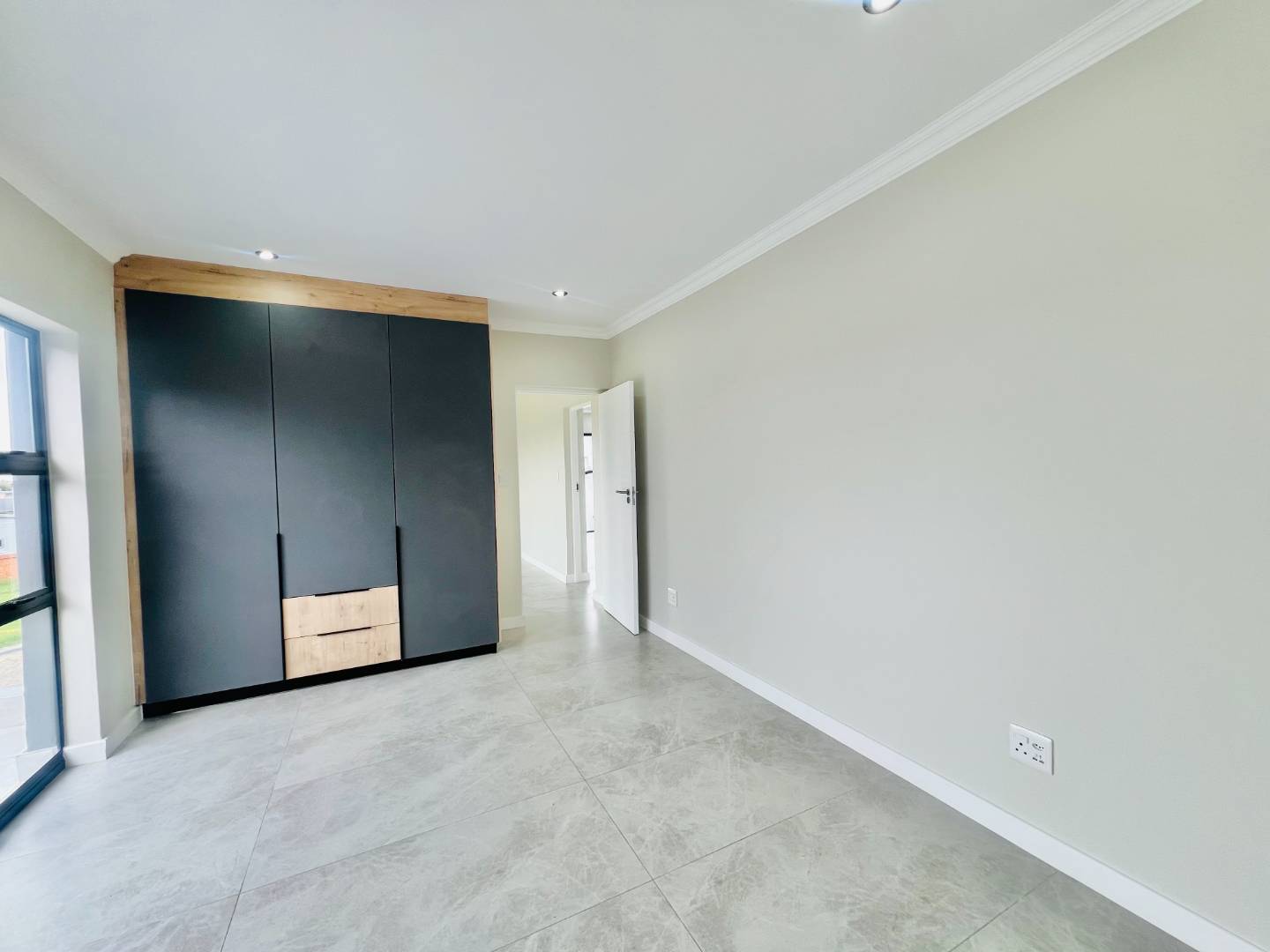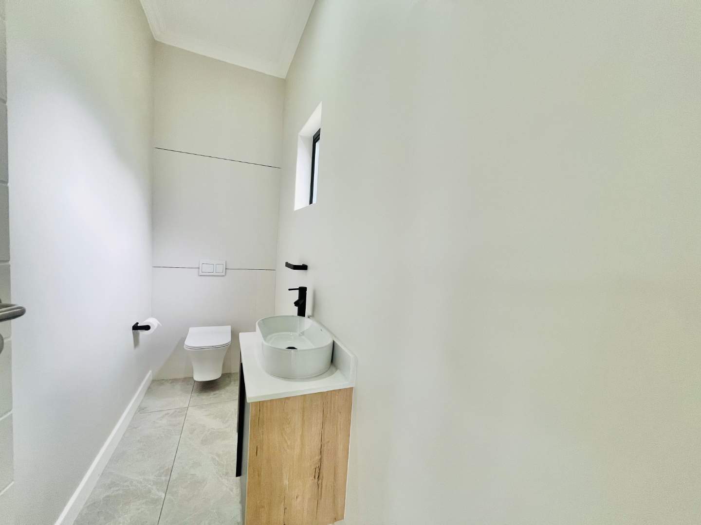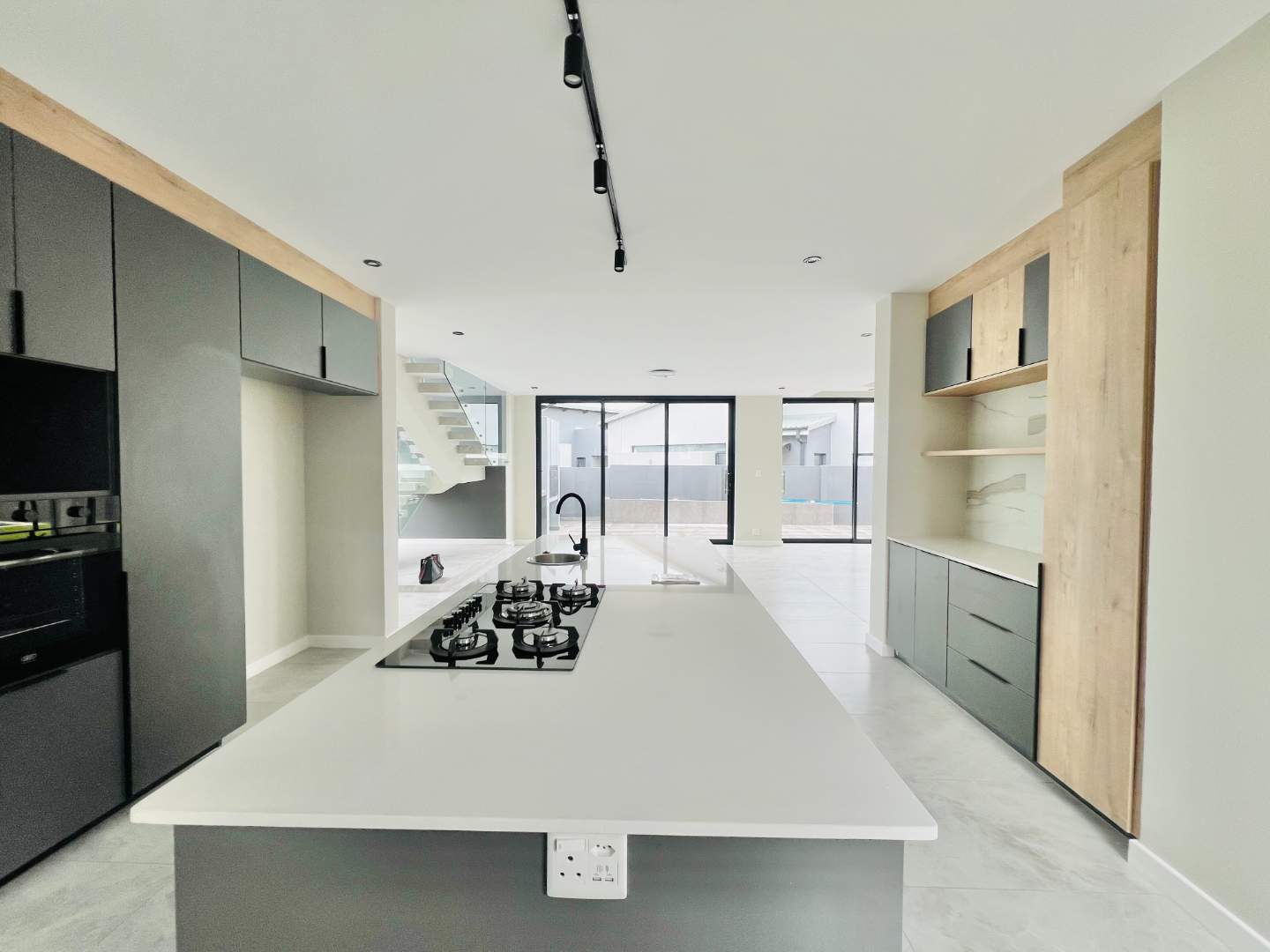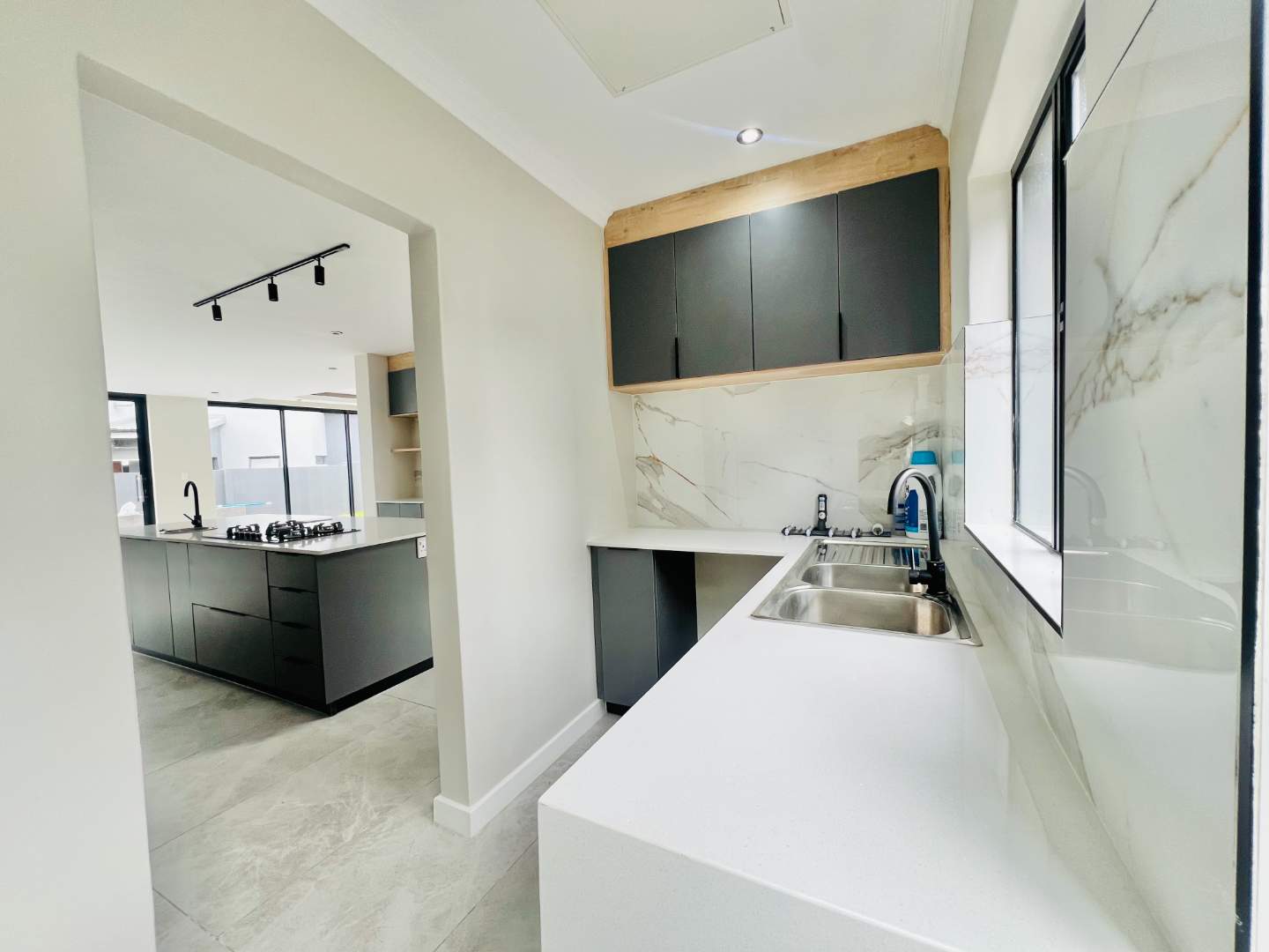 The home boasts open-plan living and dining areas, a modern kitchen with a separate pantry, built-in braai, sparkling pool, and an extra-length double garage. Large windows invite natural light throughout, creating a warm and inviting atmosphere.