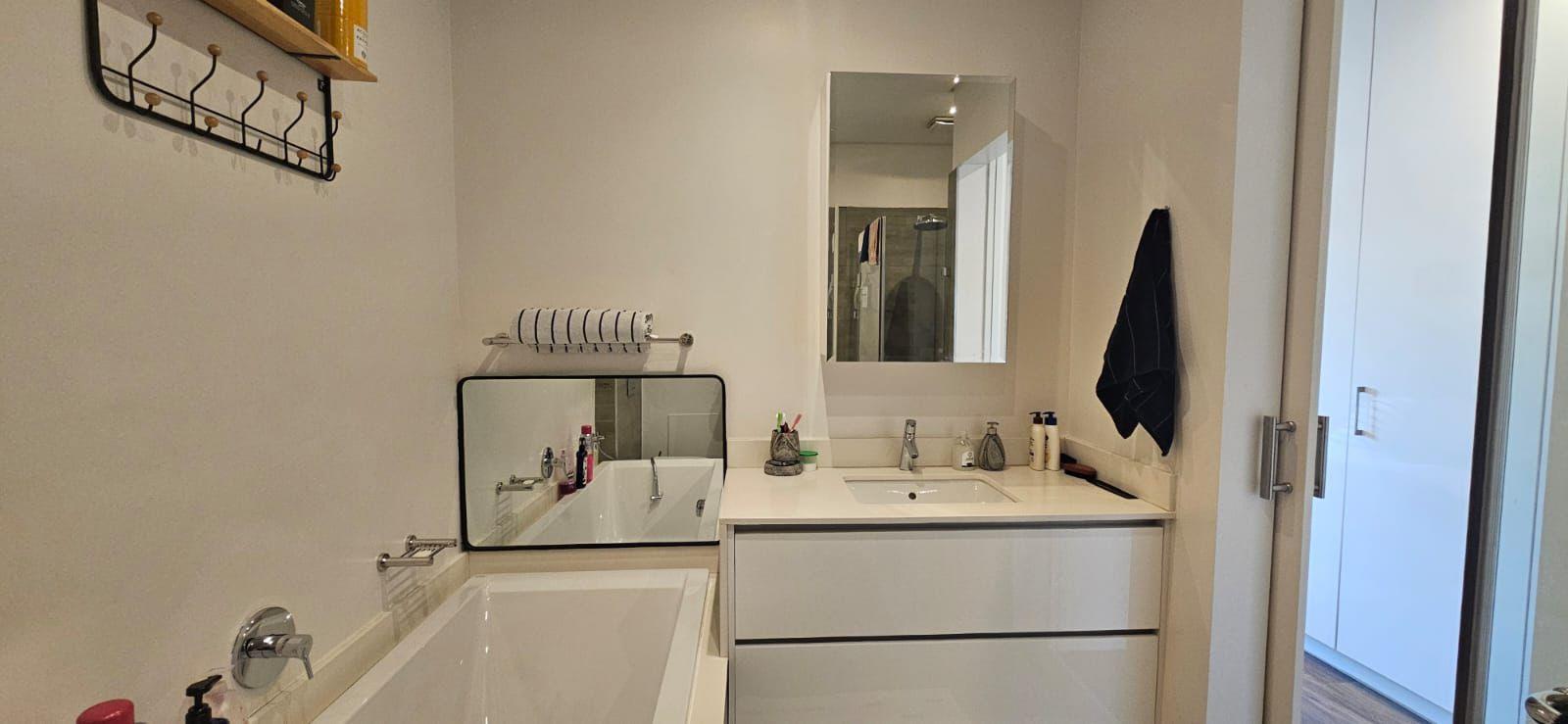 The main bedroom is spacious and serene complete with an en-suite bathroom and calming garden outlook. The second bedroom is equally well proportioned and serviced by a stylish modern bathroom with quality fittings. Both rooms feature built-in cupboards and generous natural light enhancing the sense of space.