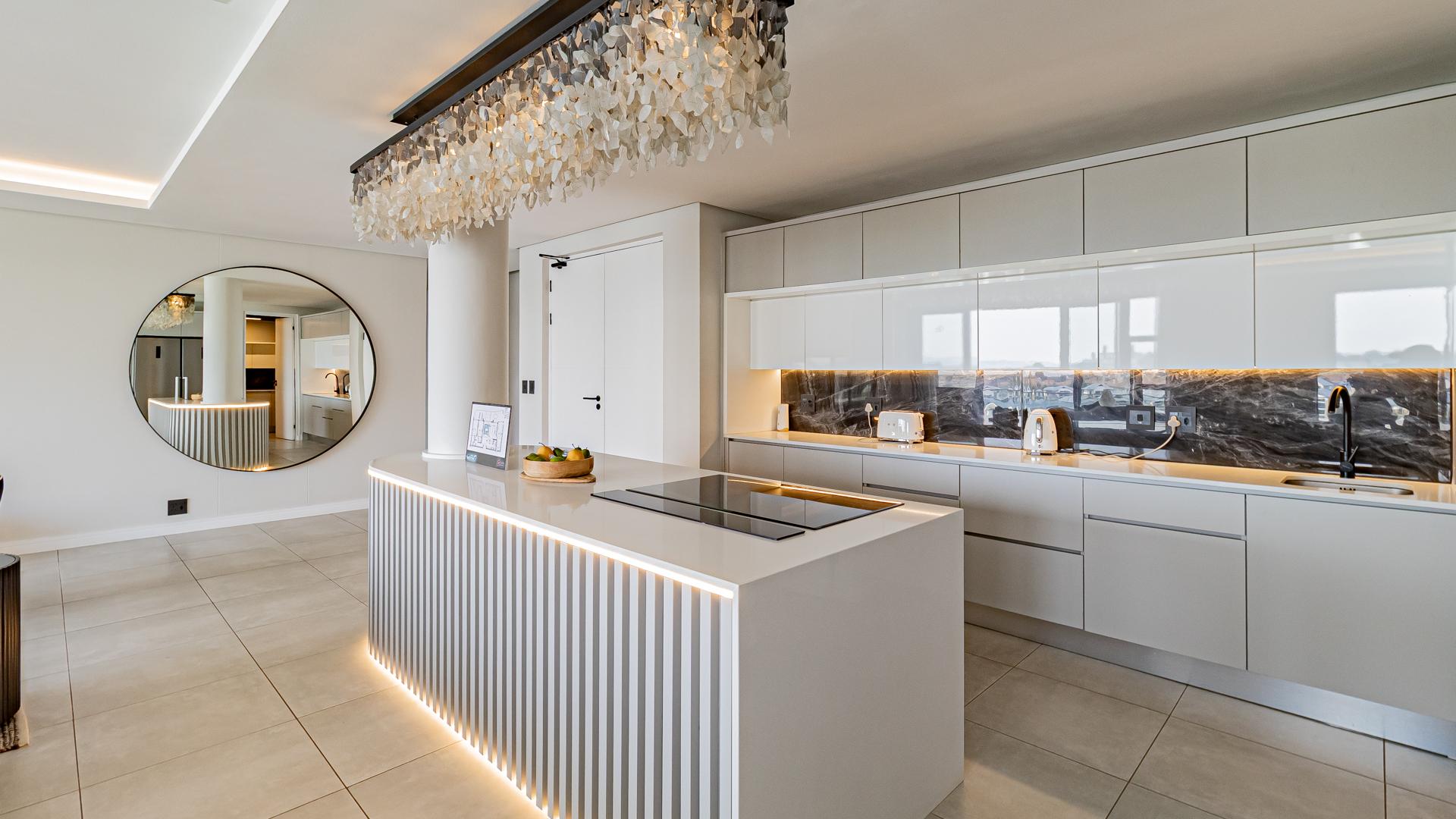 Spanning 260 sqm of beautifully curated living space, this sophisticated 3-bedroom, 3-bathroom penthouse is a showcase of refined craftsmanship and design excellence. Interiors feature integrated SMEG appliances, a dedicated scullery, and a bespoke Stephen Pikus chandelier — every element carefully selected to enhance the home’s modern aesthetic. Comfort and functionality are assured with full air-conditioning, fibre connectivity, pre-paid utilities, and backup power for seamless living.