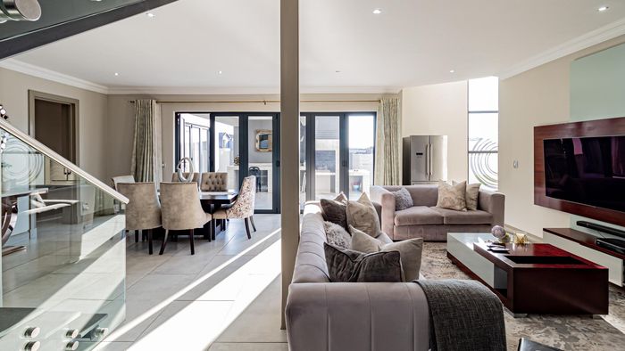Family-focused eco living in Roodepark Eco Estate with open-plan entertaining, covered patio and built-in braai flowing to a private garden, upstairs pajama lounge, four bedrooms, 3.5 baths and double garage.