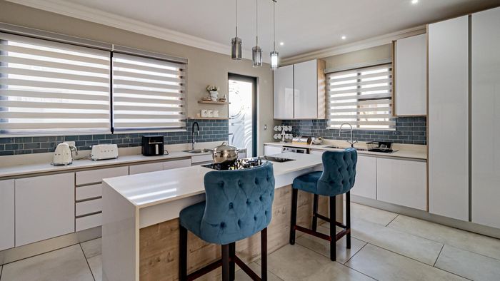 Entertainer's haven in secure Zambezi Manor Estate with covered patio and built‑in braai, contemporary kitchen with island, perfect for family living—four beds, three baths and double garage.