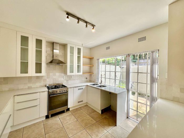 Urban professionals' retreat minutes from Sandton City and Rosebank, with a sleek modern kitchen, access to manicured complex gardens, and three bedrooms, 2.5 bathrooms.