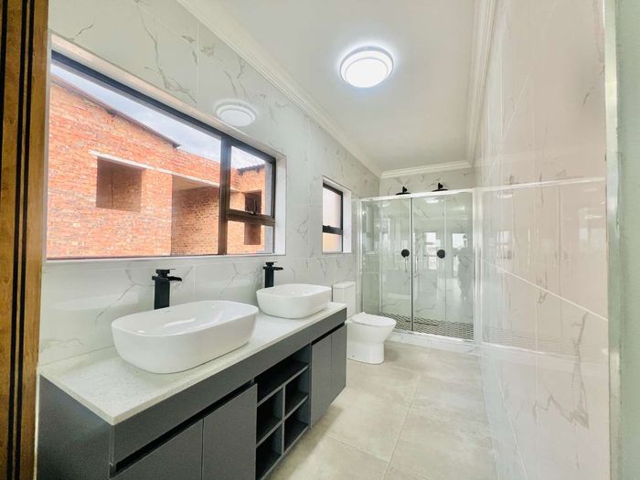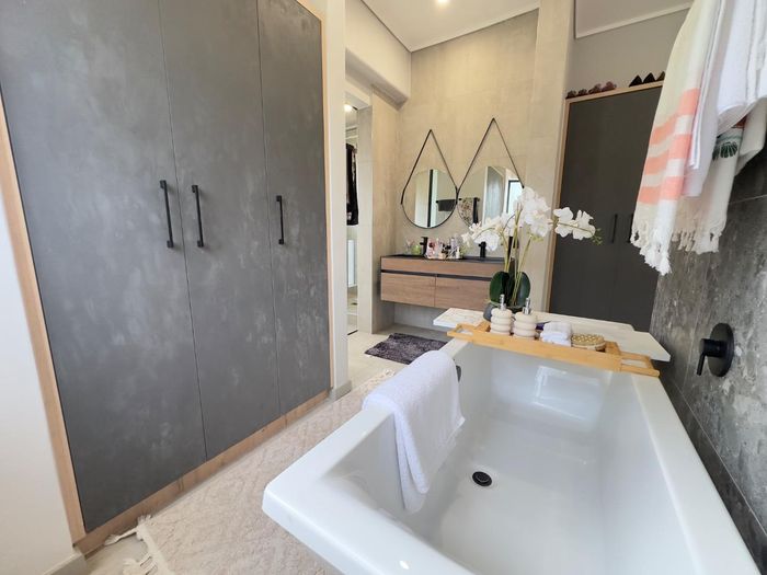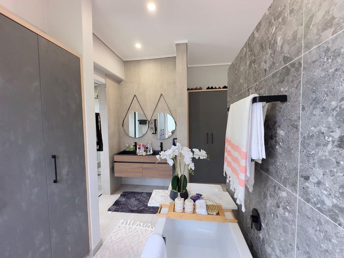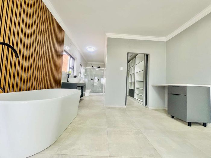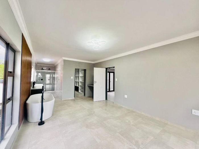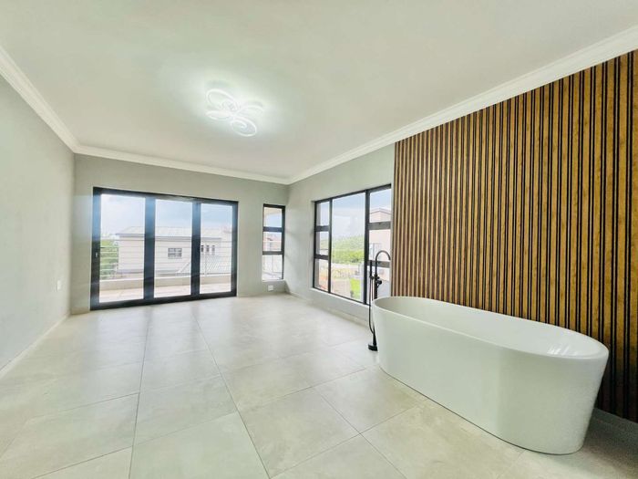 Resort-style living in a secure eco-estate with easy N1/N4 access, ideal for families; open-plan entertaining with built-in braai and jacuzzi, five bedrooms, five baths, double garage.