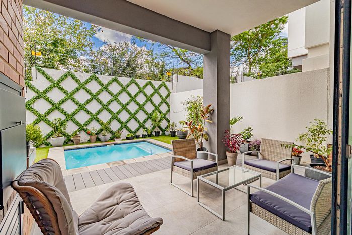 Enjoy relaxed Bryanston living with a large private balcony, clubhouse and pool in a secure complex close to shops, schools and business hubs — two-bed, two-bath.