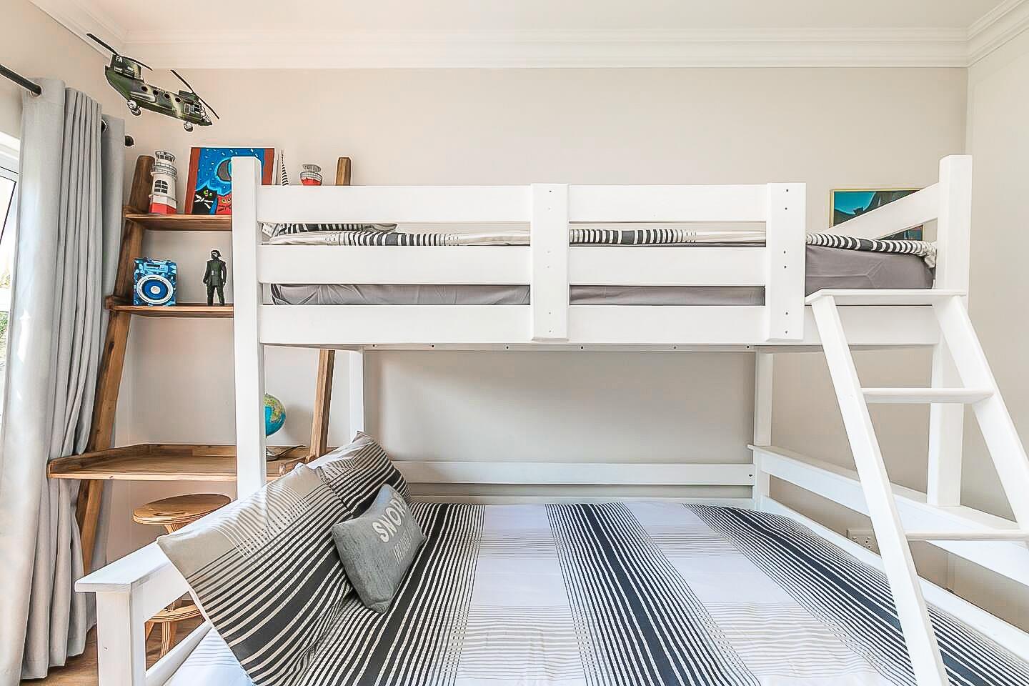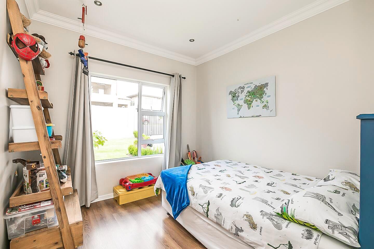 The outdoor area is a family haven, with a large enclosed yard complete with a jungle gym, treehouse, and swings, ideal for children. The home is equipped with an 8KVA Turner Morris generator and solar backup system, ensuring uninterrupted power supply. Additional features include a heat pump geyser, prepaid electricity, a double automated garage with direct home access, and extra driveway parking behind an electric gate with intercom access.