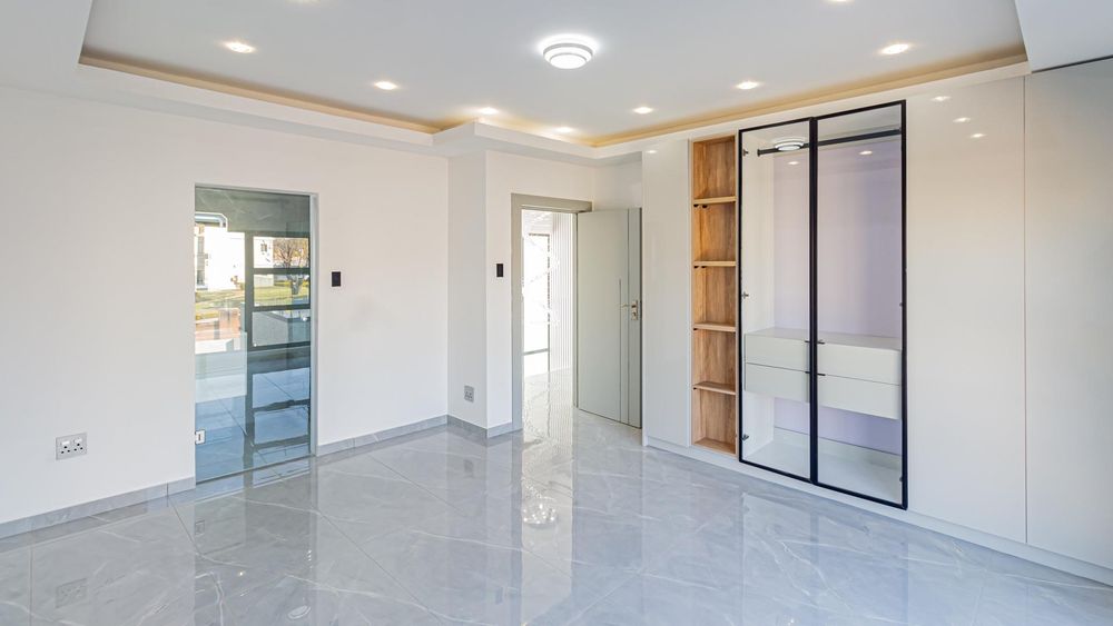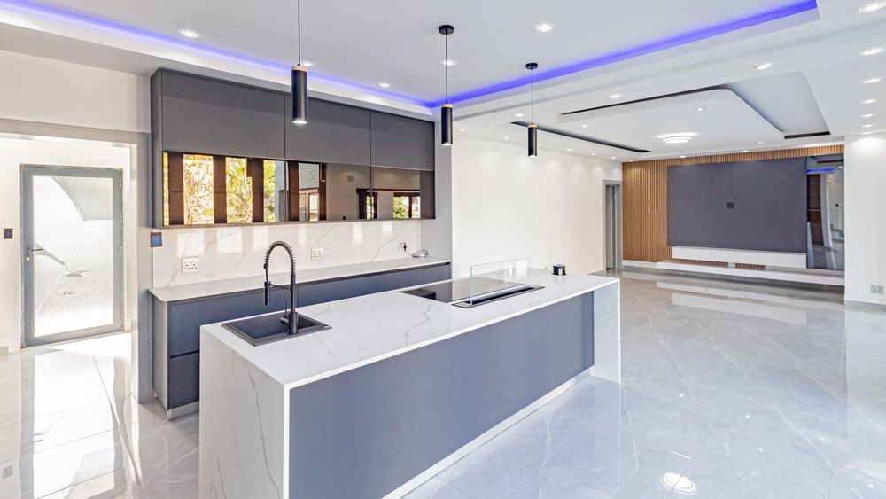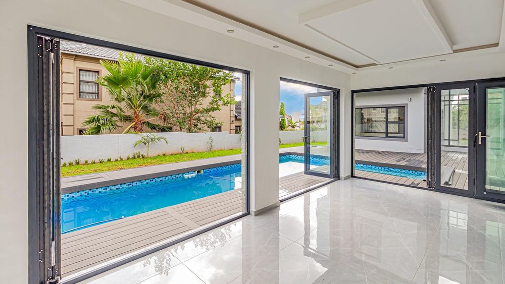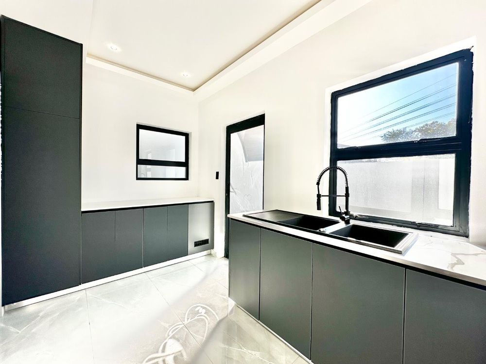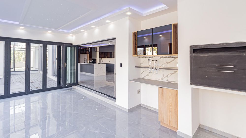 As you enter through the double-volume entrance, you're greeted by a beautifully designed space with impressive wall cladding, setting the tone for the entire home. The expansive layout features two elegant lounges, perfect for both formal and informal gatherings, while the dining area seamlessly connects to a dream kitchen. Equipped with state-of-the-art Siemens appliances, sleek modern finishes, and a stylish scullery, this kitchen is both functional and beautiful.