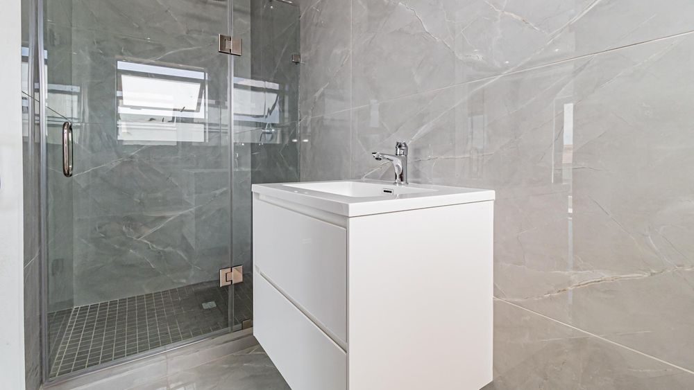 Comfort and convenience are top of mind, with air conditioning throughout. The bulkhead ceilings throughout the home enhance its sense of grandeur, and large windows and sliding doors flood the space with natural light.