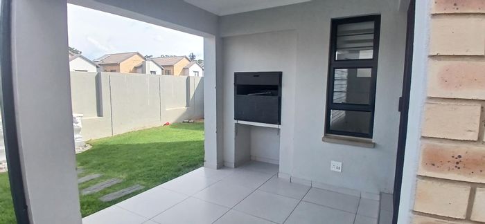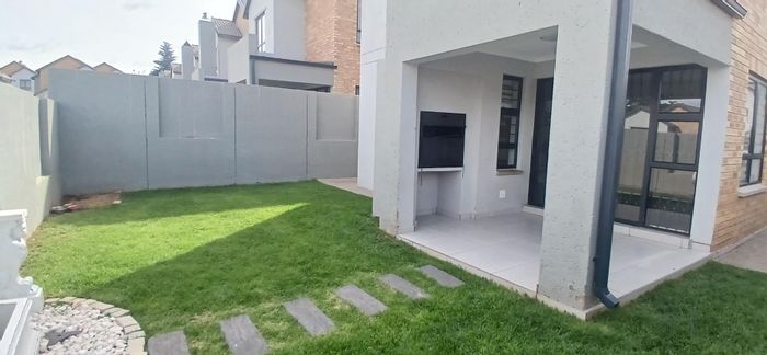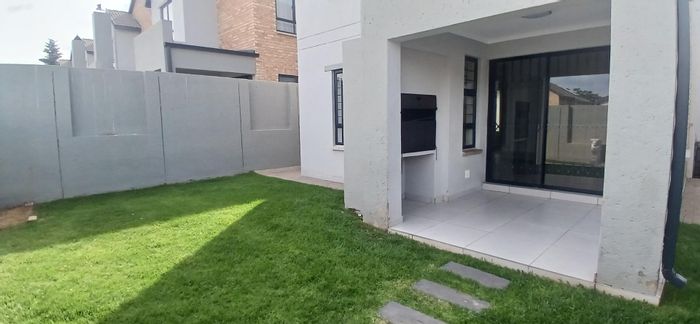 Alfresco entertaining and secure family living in Vachellia Estate, steps from Broadacres and Fourways Mall, with a covered braai patio and private garden; three bedrooms, 2.5 baths, double garage.