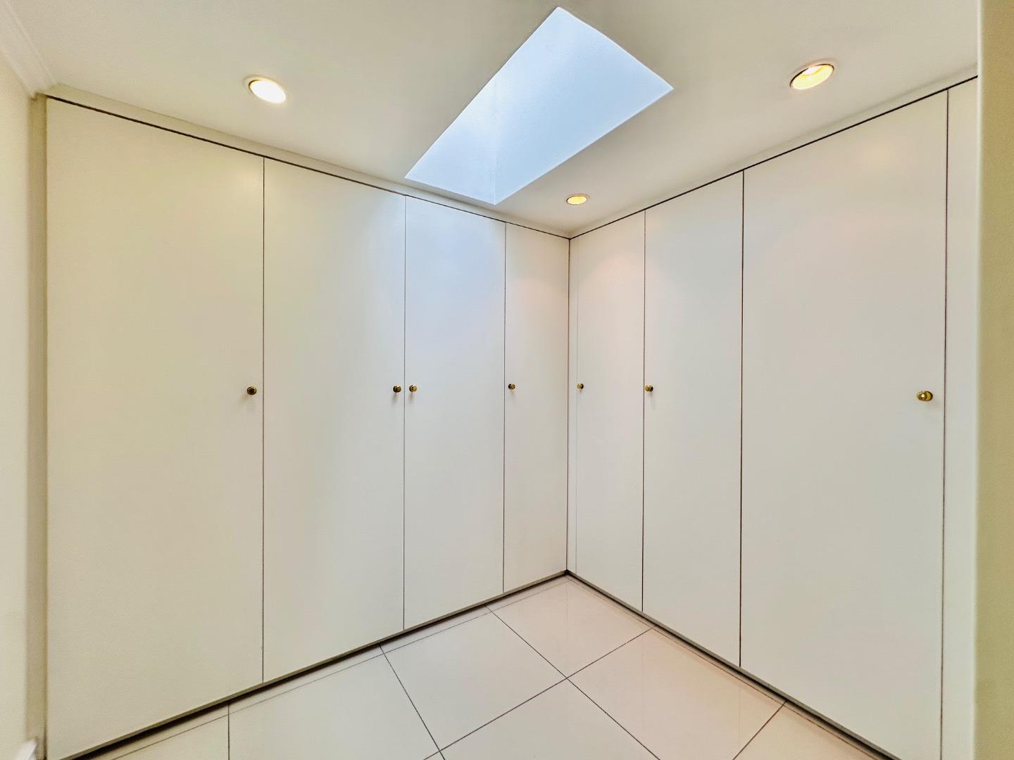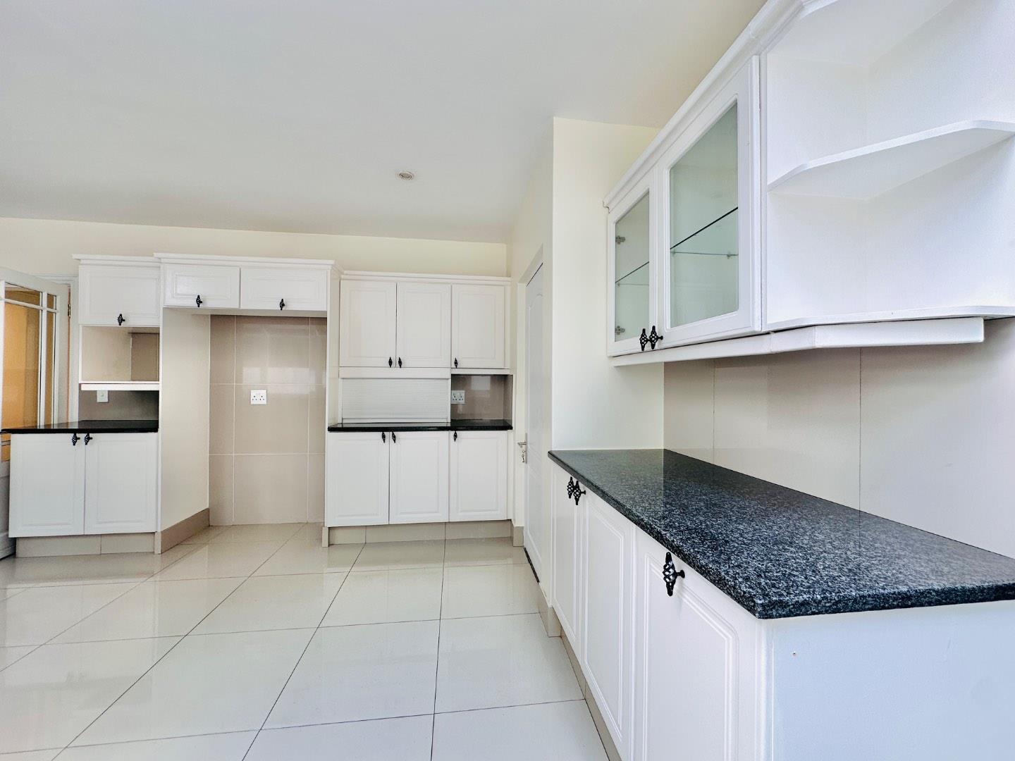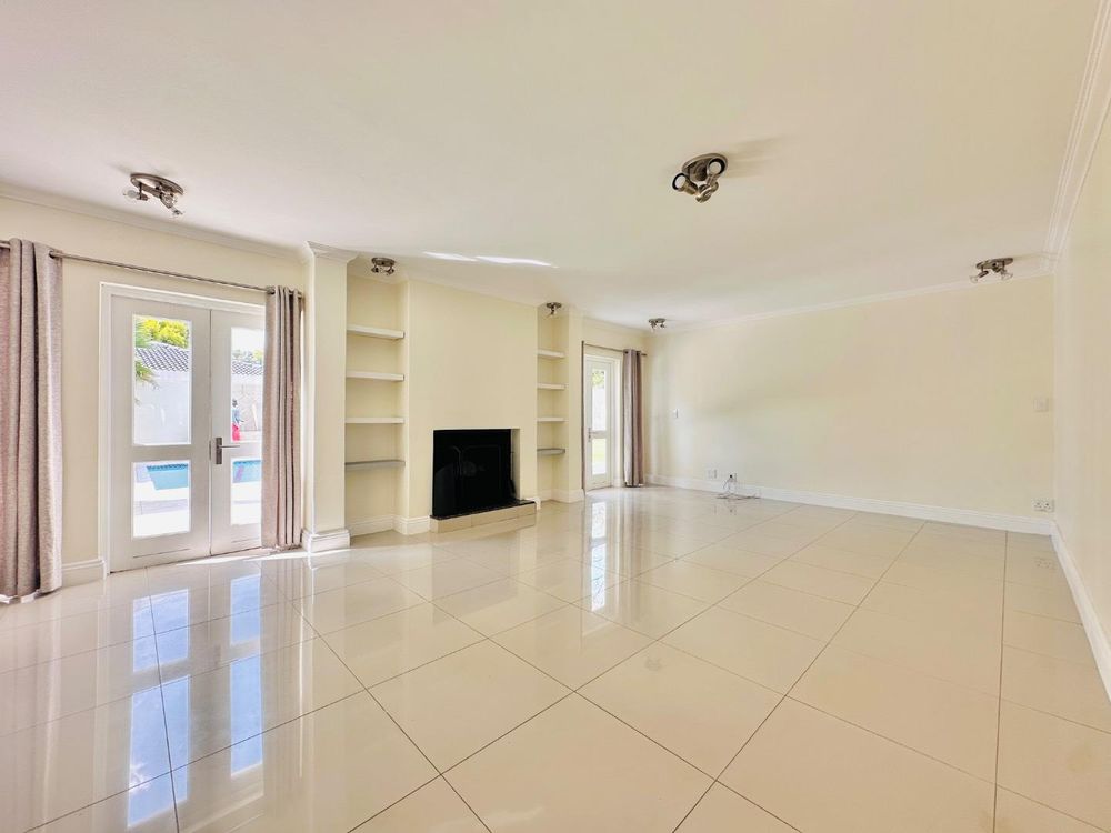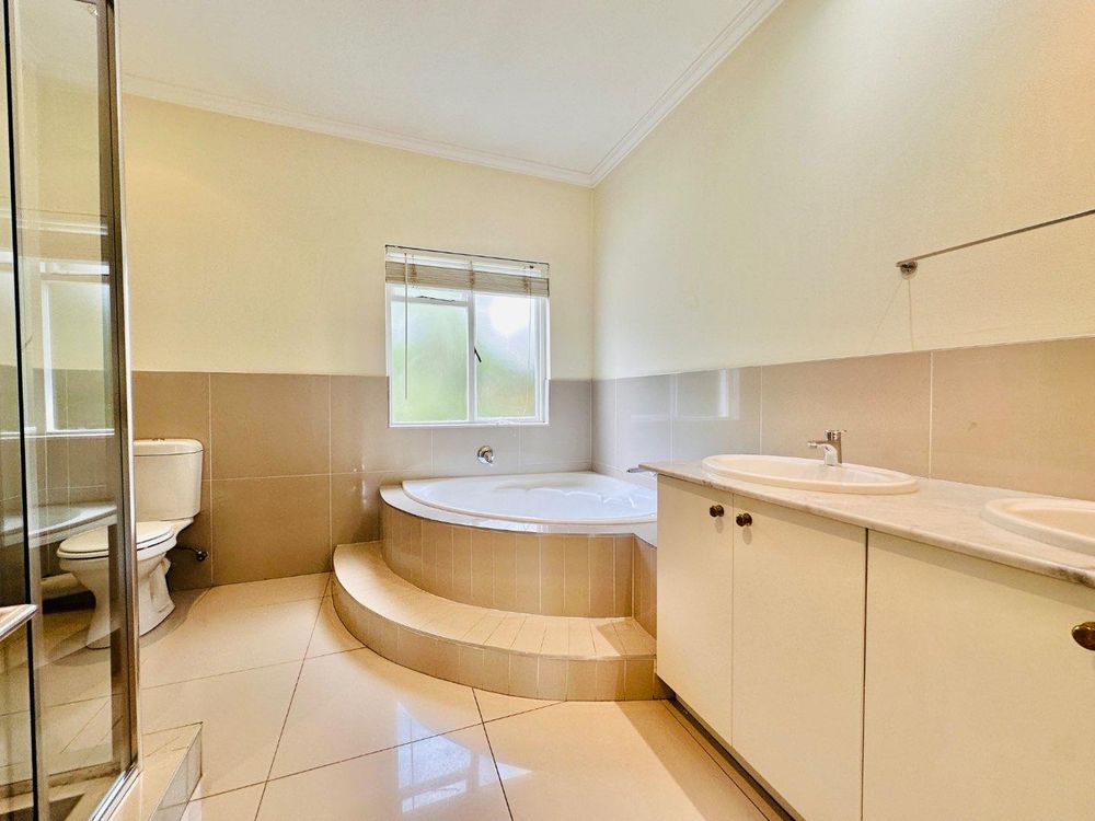The living spaces are thoughtfully designed and include both formal and informal lounges, each enhanced by fireplaces for added warmth and ambiance, as well as a spacious dining area ideal for family gatherings. The modern kitchen serves as the heart of the home, featuring sleek cabinetry, granite countertops, a double oven, ample storage, and a separate scullery to keep the main kitchen area neat and functional. A large skylight allows sunlight to stream in, adding to the bright and welcoming atmosphere.