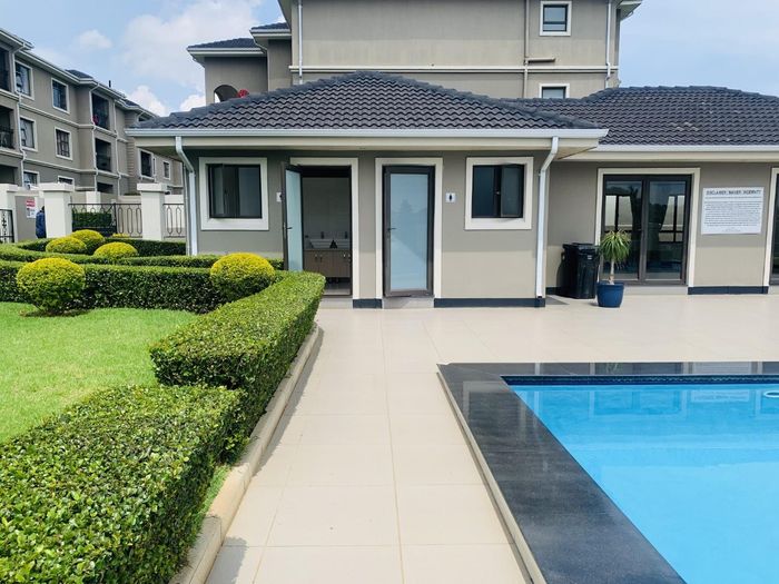 Relaxed eco-living with resort-style pool and landscaped gardens in Greenlee Eco Estate, Linbro Park; bright modern kitchen, two bedrooms, two bathrooms and secure covered parking.