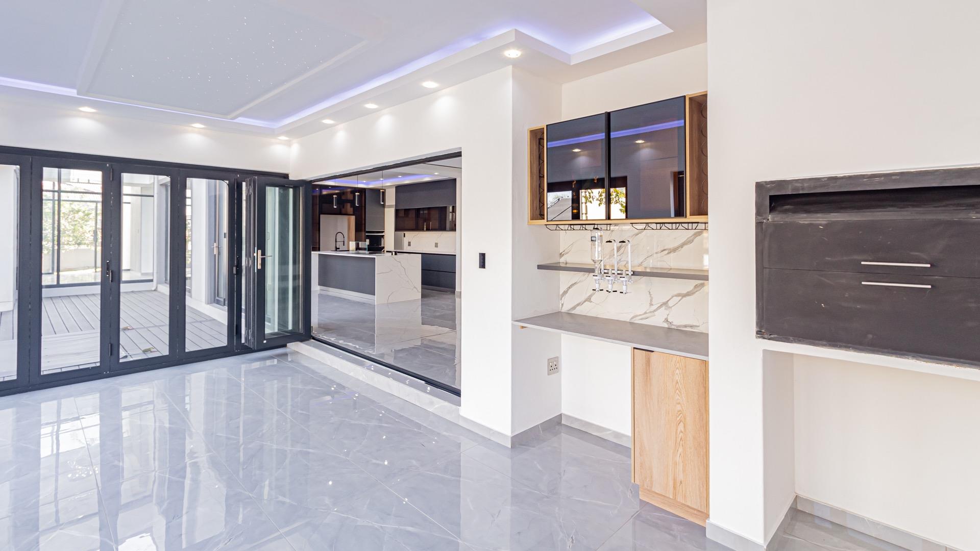 As you enter through the double-volume entrance, you're greeted by a beautifully designed space with impressive wall cladding, setting the tone for the entire home. The expansive layout features two elegant lounges, perfect for both formal and informal gatherings, while the dining area seamlessly connects to a dream kitchen. Equipped with state-of-the-art Siemens appliances, sleek modern finishes, and a stylish scullery, this kitchen is both functional and beautiful.