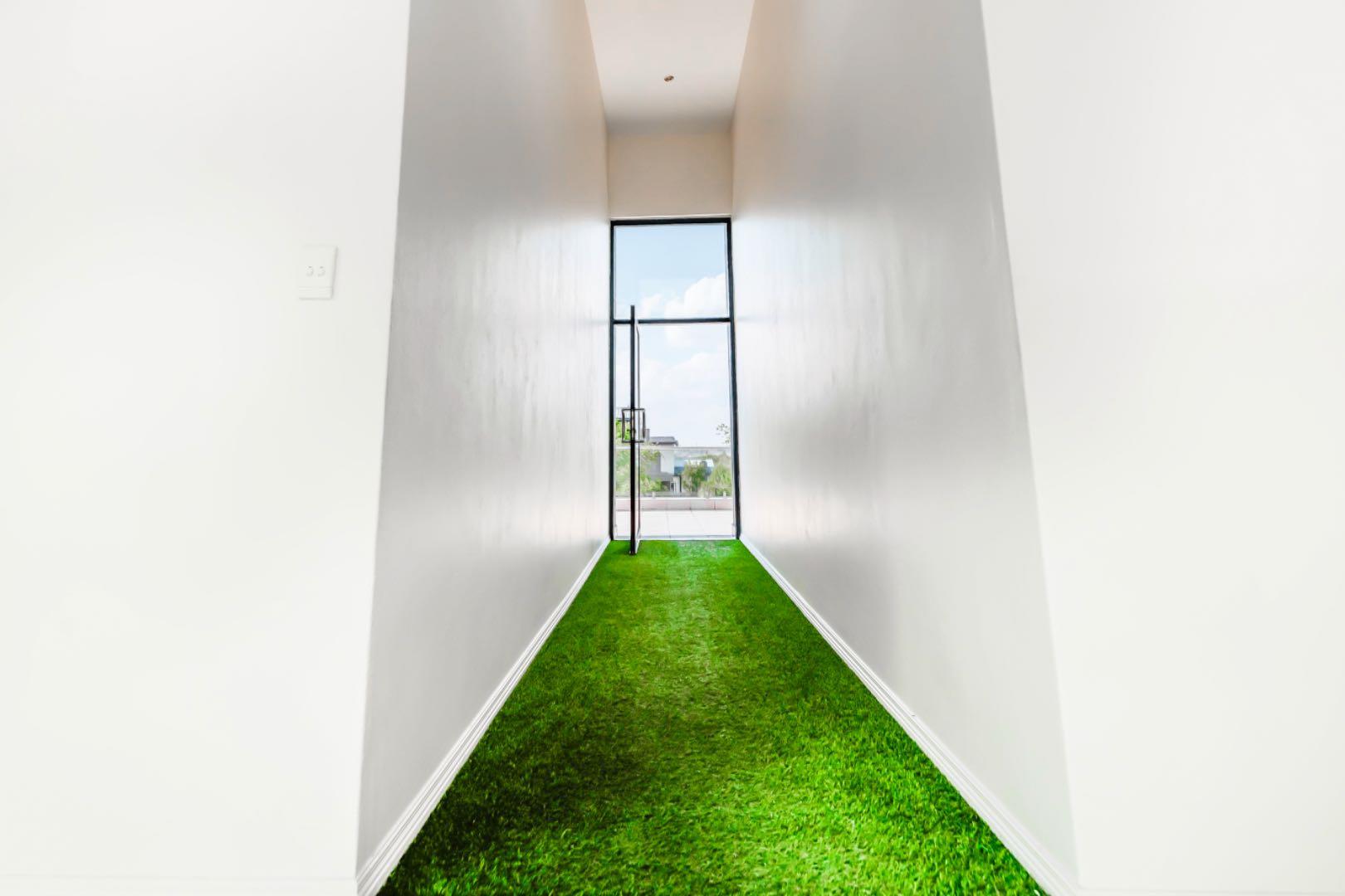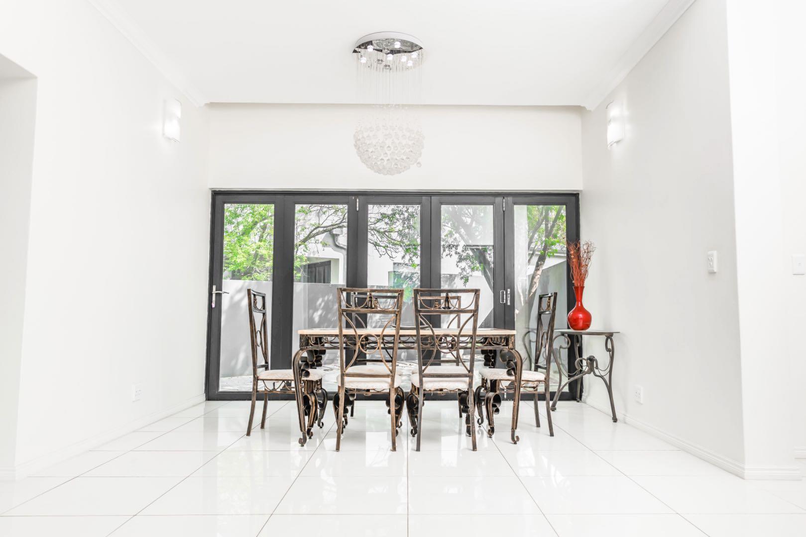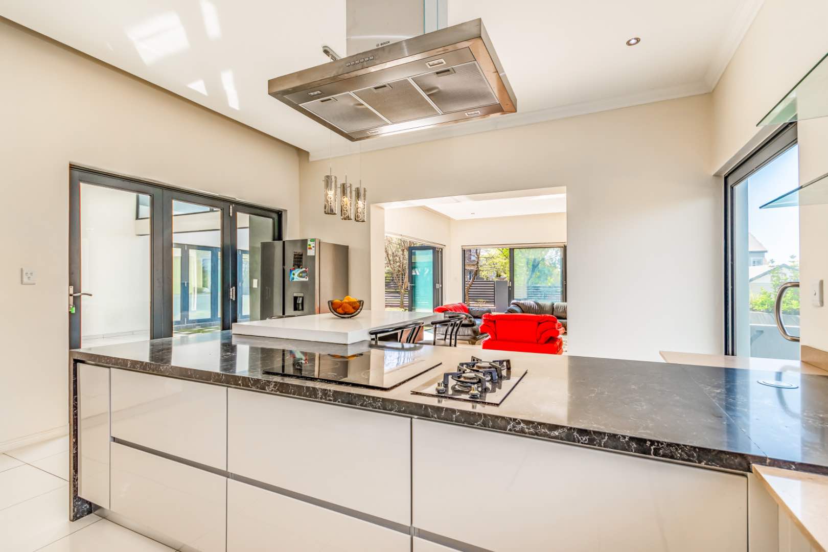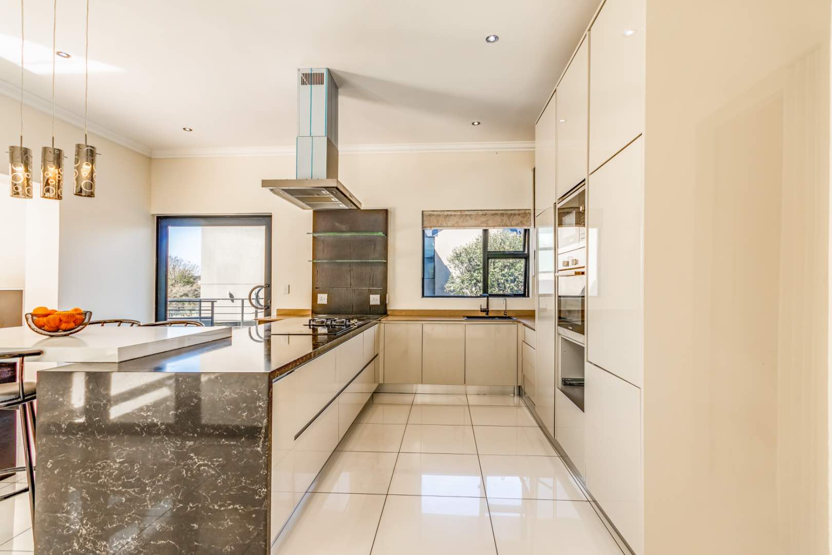 Experience the pinnacle of luxury living in this stunning north-facing, four-bedroom residence, uniquely situated on a prominent corner stand within the prestigious Helderfontein Estate. This elevated home epitomizes modern architecture with its sleek lines, towering ceilings, and expansive windows that bathe the interiors in natural light, creating an inviting and sophisticated ambiance.