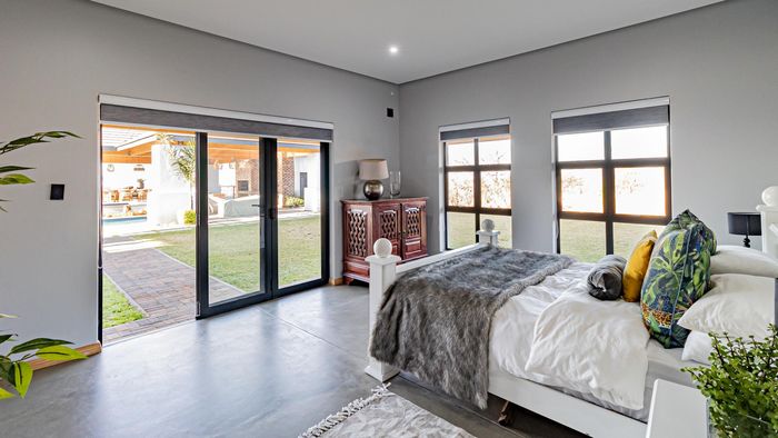 5 bedrooms, 5 bathrooms, 6 garages, 1134 m² floor size on a 28954 m² stand in Thorny Hill Wildlife Estate.