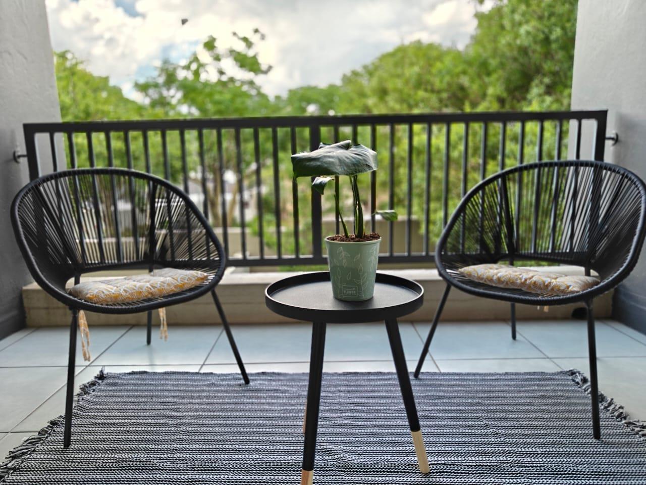 Effortless urban living in northern Johannesburg — secure, fully furnished 1st-floor apartment near Sandton and Fourways, with a spacious balcony offering sweeping views; two bedrooms, two bathrooms, double garage.