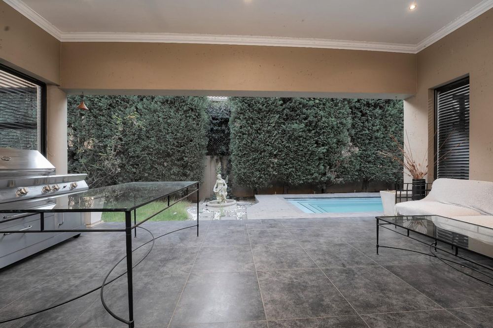 Upon entering, you're greeted by a light-filled interior adorned with luxurious marble flooring, setting the stage for a modern yet timeless living experience. The open-plan lounge features an elegant fireplace and seamlessly extends onto an entertainment deck, lush garden, and a year-round swimming pool—perfect for relaxing weekends or chic social gatherings.