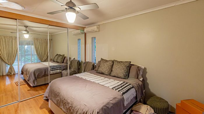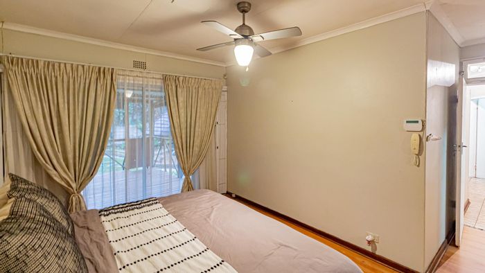 Private, income-friendly retreat in tranquil Bryanston gated enclave, walking distance to top schools and shops. Mature gardens, pool, covered patio, 2-bed flatlet and cottage; main house has three bedrooms.