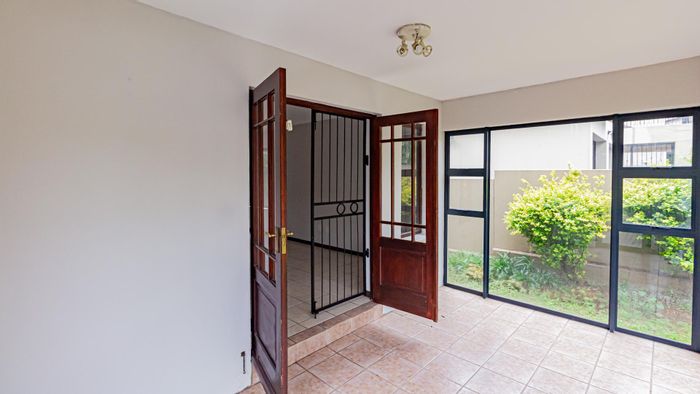 Relaxed estate living with effortless entertaining in a secure, sought-after community, featuring a glass-enclosed patio, private balcony views, low-maintenance garden, and three bedrooms, 2.5 baths, double garage.