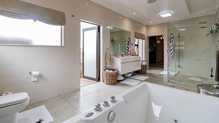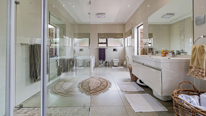 Effortless family living and entertaining in Helderfontein Residential Estate, featuring an entertainer's patio, sleek black-finish kitchen, five en-suite bedrooms and four garages.