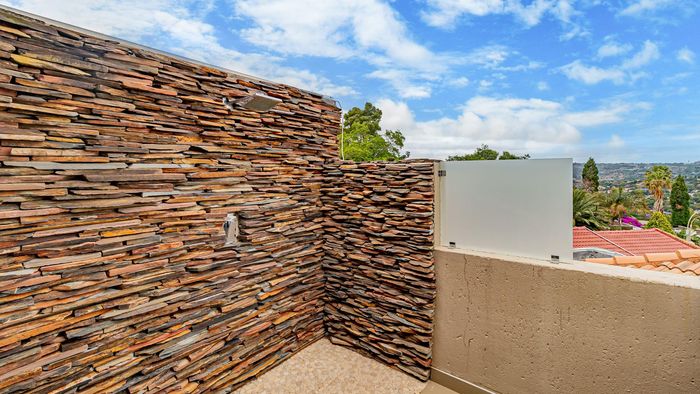 Sophisticated family living in Bryanston close to St Stithians and Sandton CBD — entertainer's layout centered around a private cantilever balcony; four bedrooms, double garage.