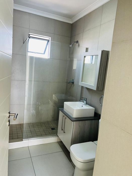 Enjoy secure, active community living near Mall of Africa and top schools, with a private patio and built-in braai — modern ground-floor townhouse with three beds, two baths, two covered bays.