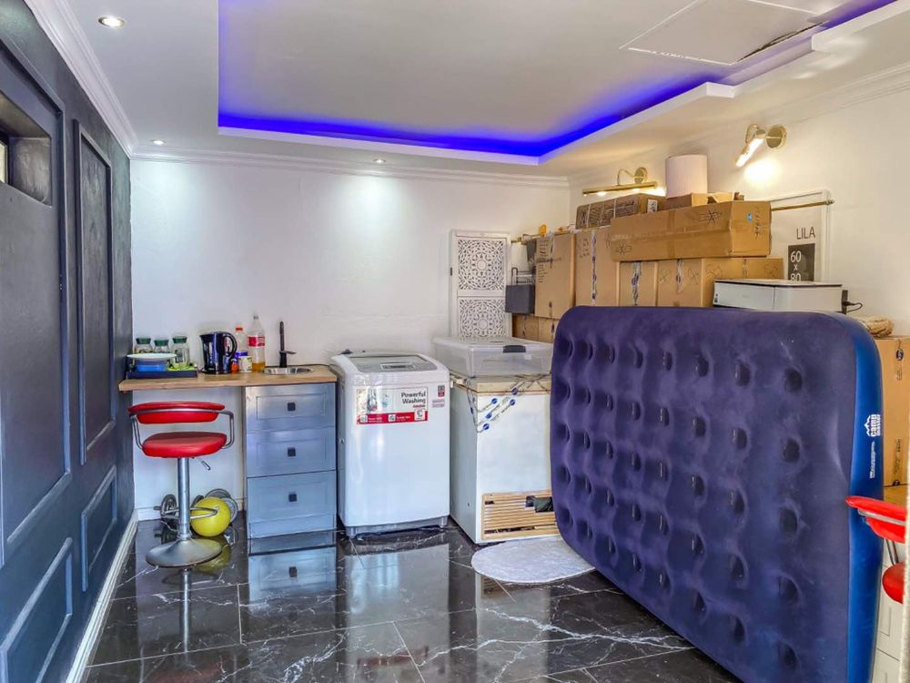 Step outside to discover an entertainer's paradise. The outdoor area is equipped with roof shutters and braai stands, ideal for hosting gatherings in any weather. Additionally, the property includes a charming cottage and bathroom that can serve as an office or comfortable staff accommodation, enhancing the home's versatility.