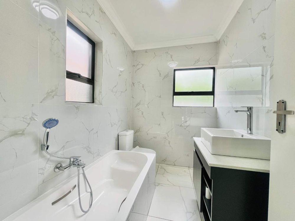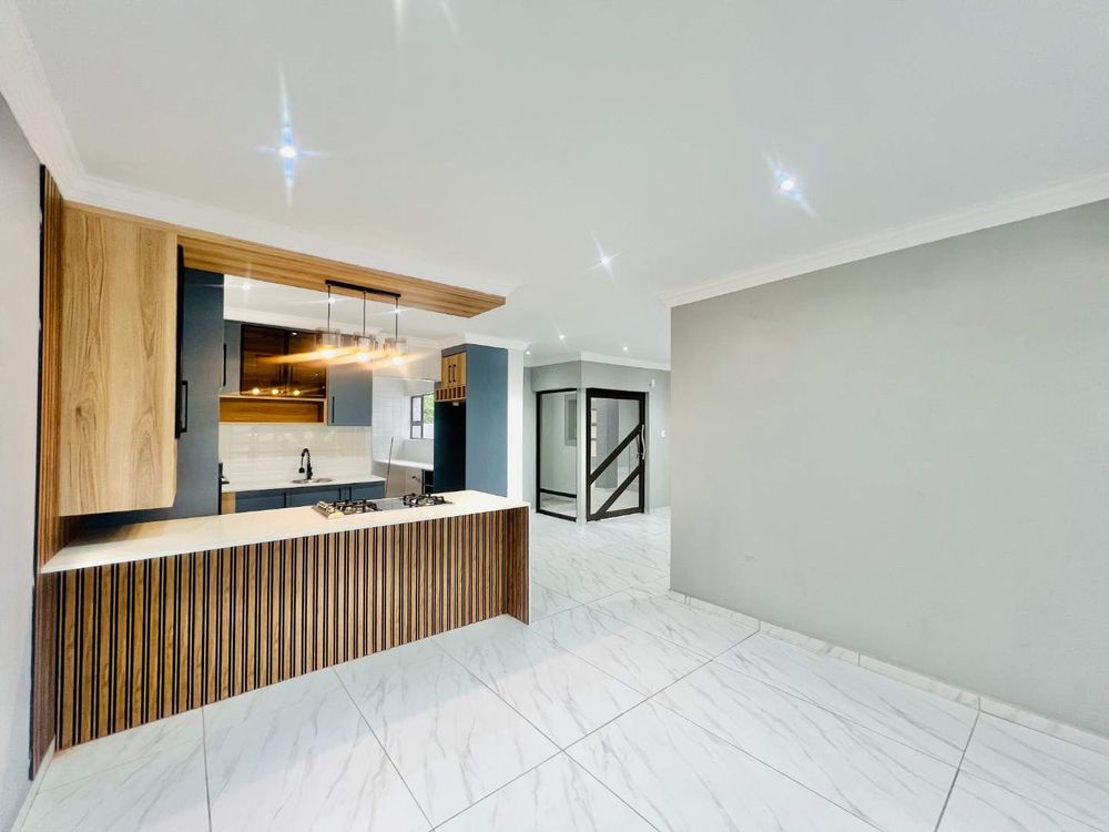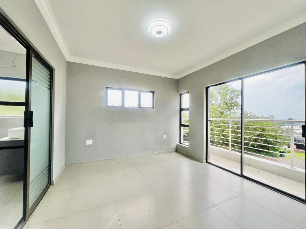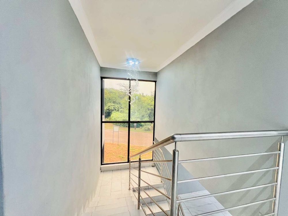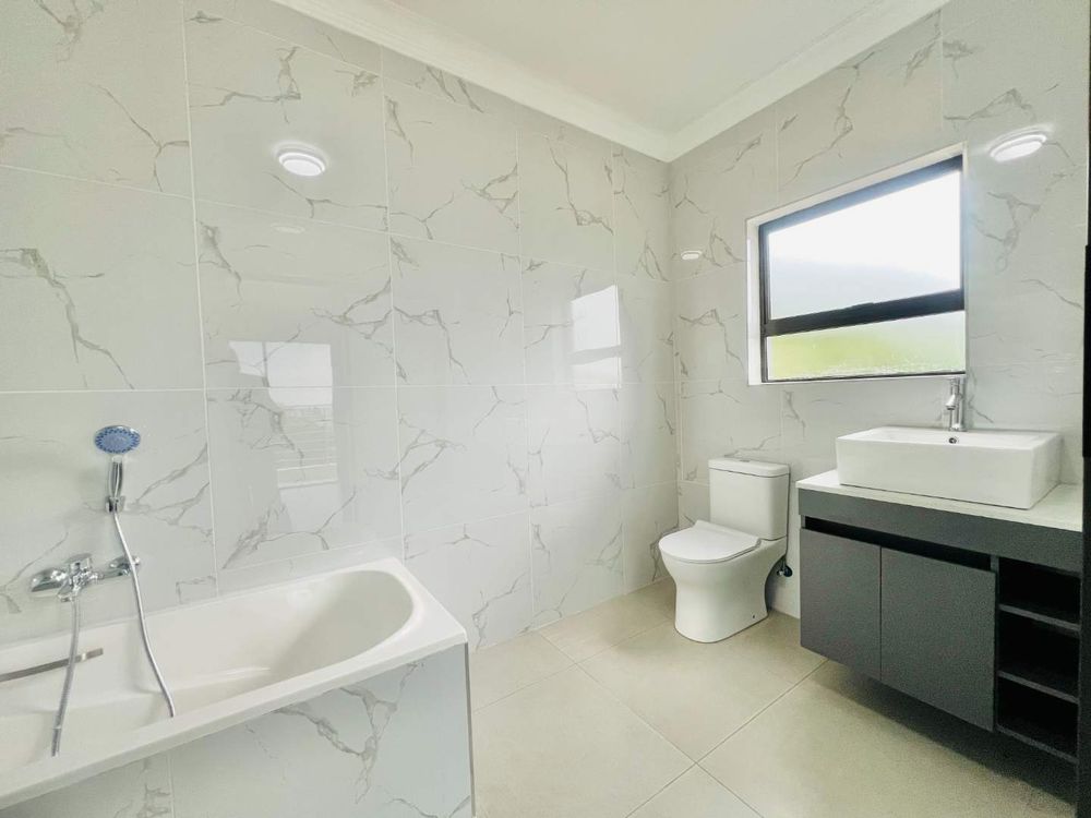 Step into contemporary luxury with this brand-new home set in a secure eco estate with free-roaming wildlife and premium lifestyle amenities. The light-filled open-plan design includes two spacious lounges, a modern kitchen with scullery, a downstairs bedroom with a full bathroom, and seamless flow to the built-in braai area and jacuzzi—perfect for relaxed entertaining.