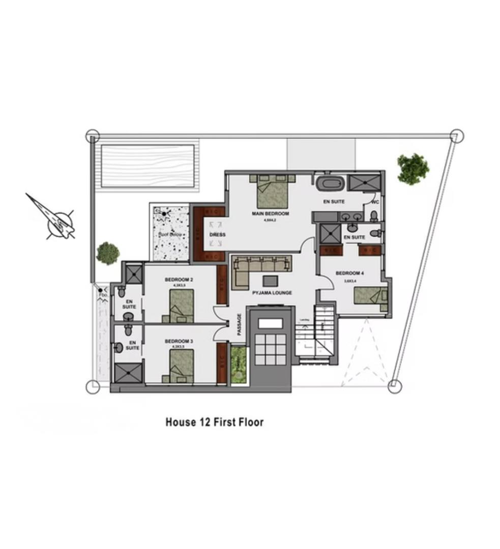 The home features four spacious bedrooms, each with its own en-suite bathroom, ensuring comfort and privacy for everyone. A guest WC is conveniently located on the main floor. For added leisure, enjoy the PJ lounge, perfect for movie nights or quiet relaxation.