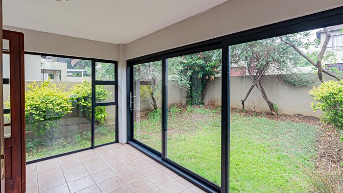 Relaxed estate living with effortless entertaining in a secure, sought-after community, featuring a glass-enclosed patio, private balcony views, low-maintenance garden, and three bedrooms, 2.5 baths, double garage.